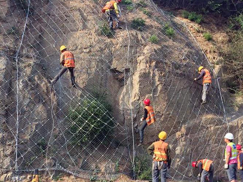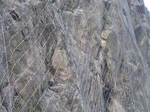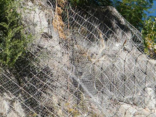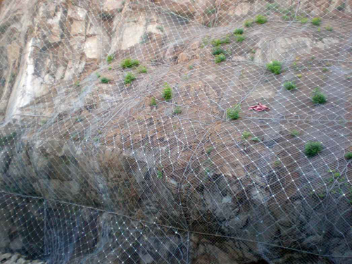 主動(dòng)防護(hù)系統(tǒng)是以鋼絲繩網(wǎng)為主的各類柔性網(wǎng)覆蓋包裹在所需防護(hù)斜坡或巖石上,以限制坡面巖石土體的風(fēng)化剝落或破壞以及危巖崩塌(加固作用),或?qū)⒙涫刂朴谝欢ǚ秶鷥?nèi)運(yùn)動(dòng)(圍護(hù)作用)。